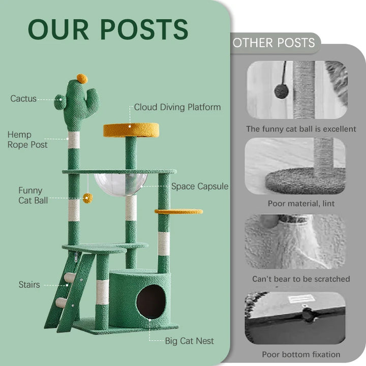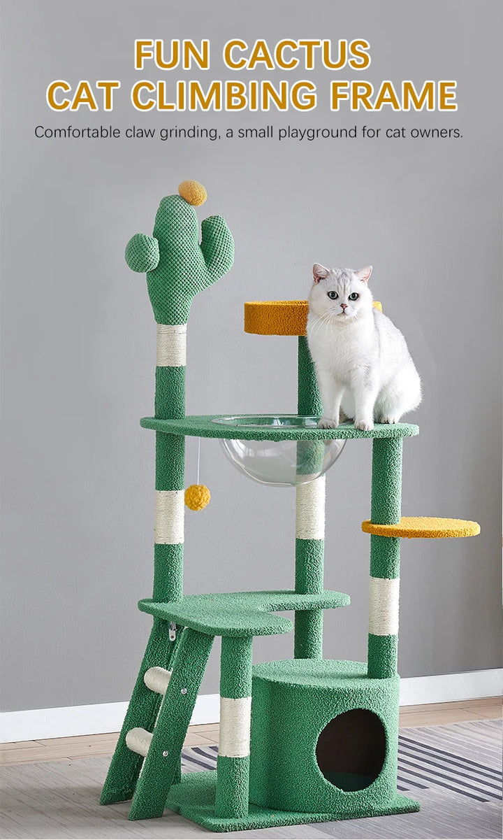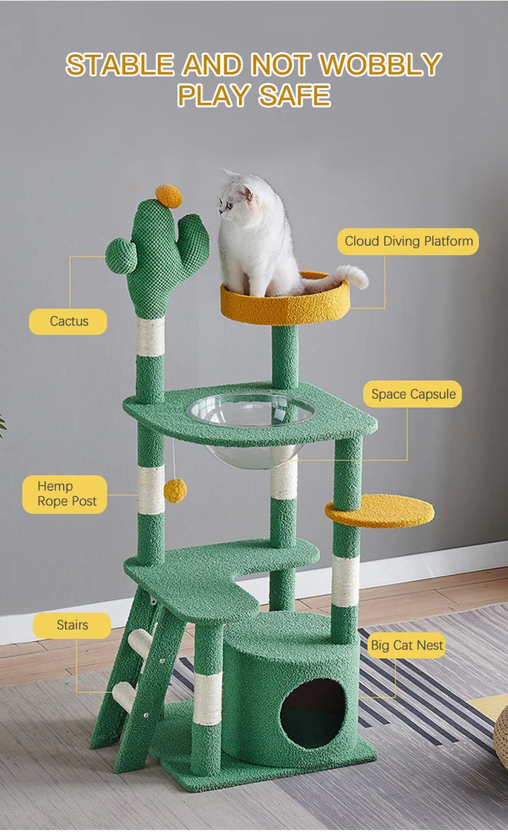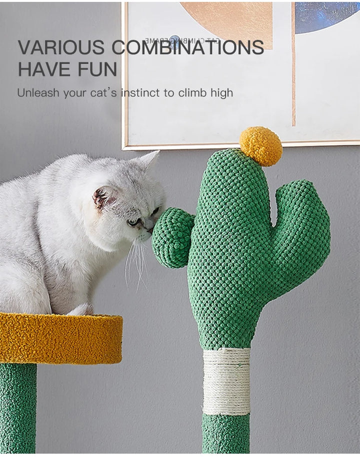 Add a playful touch to your home with this cactus-style cat tree, designed to keep your cat active, comfortable, and endlessly entertained. Featuring multiple levels, plush resting areas, and durable sisal-wrapped scratching posts, this cat tower blends functionality with fun modern decor.