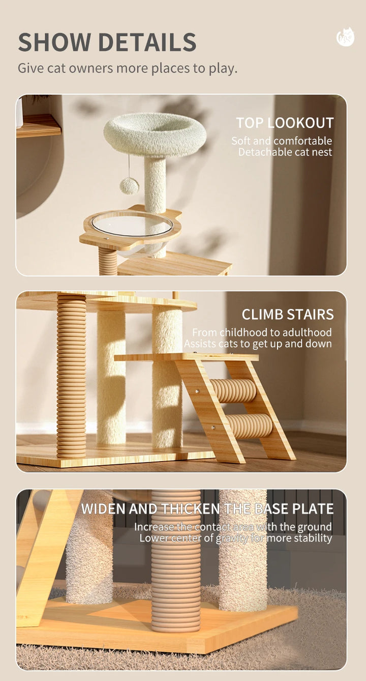 Durable sisal posts: Encourage natural scratching while protecting furniture.