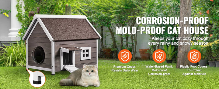 Give your cats a safe, warm retreat with this outdoor wooden cat house, built to withstand every season. Crafted from durable cedar wood and coated with water-resistant paint, it’s designed to keep cats cozy and dry — perfect for outdoor pets, feral colonies, or small animals like rabbits and guinea pigs.