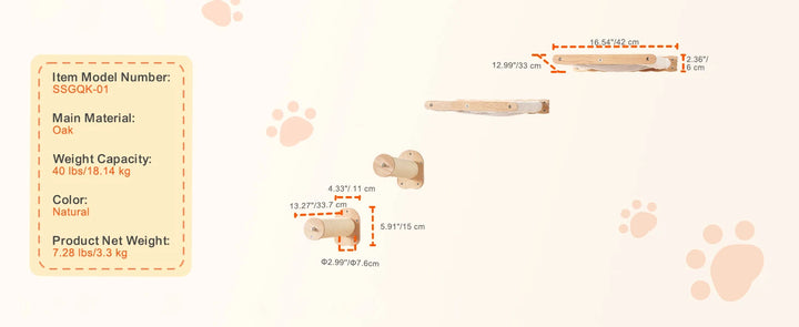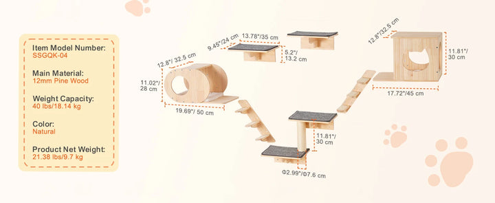 This 7-piece set includes 2 jumping boards, 2 cozy nests, 2 hammocks, and a mini cat tree, giving your cat endless opportunities to jump, climb, rest, and scratch. The E0-grade solid wood construction supports up to 40 lbs and is odor-free, sturdy, and safe for daily use.