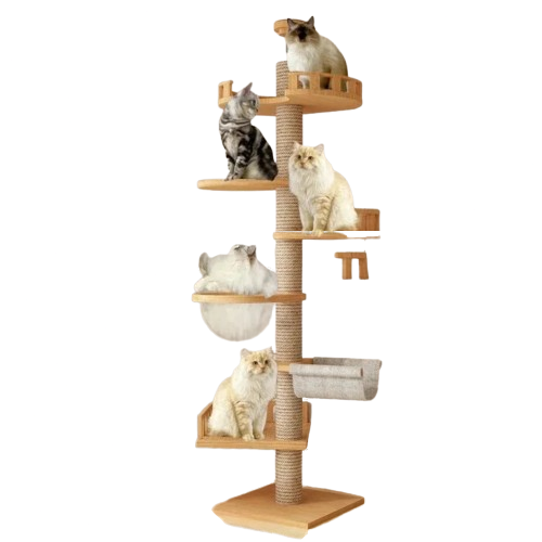 Give your cats the ultimate playground with this adjustable floor-to-ceiling cat tree house. Crafted from durable wood and built to extend from floor to ceiling, it saves space while creating a vertical adventure zone for climbing, scratching, and lounging.