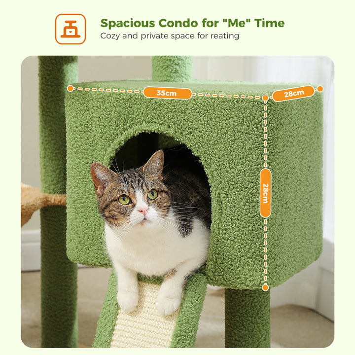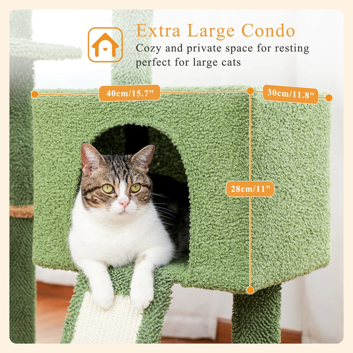 The multi-level design gives cats plenty of space to climb, perch, and explore, while the cozy condo and soft hammock provide restful spots for naps. A plush top perch serves as a lookout tower, giving your cat the perfect vantage point.