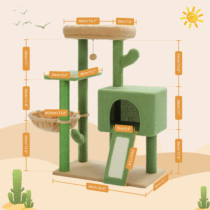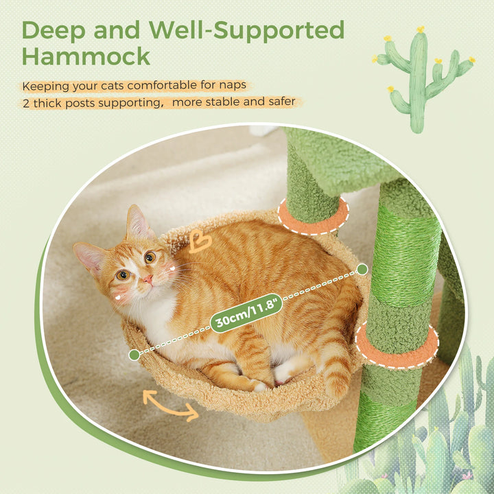 Durable sisal-covered scratching posts satisfy natural clawing instincts and protect your furniture, while the sturdy base ensures stability for active play. The fun cactus shape adds a whimsical touch, making it both a functional pet tower and a stylish home accent.