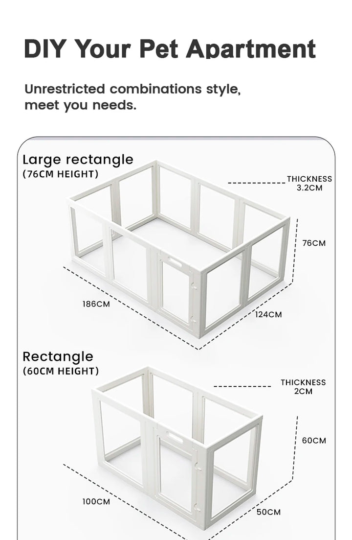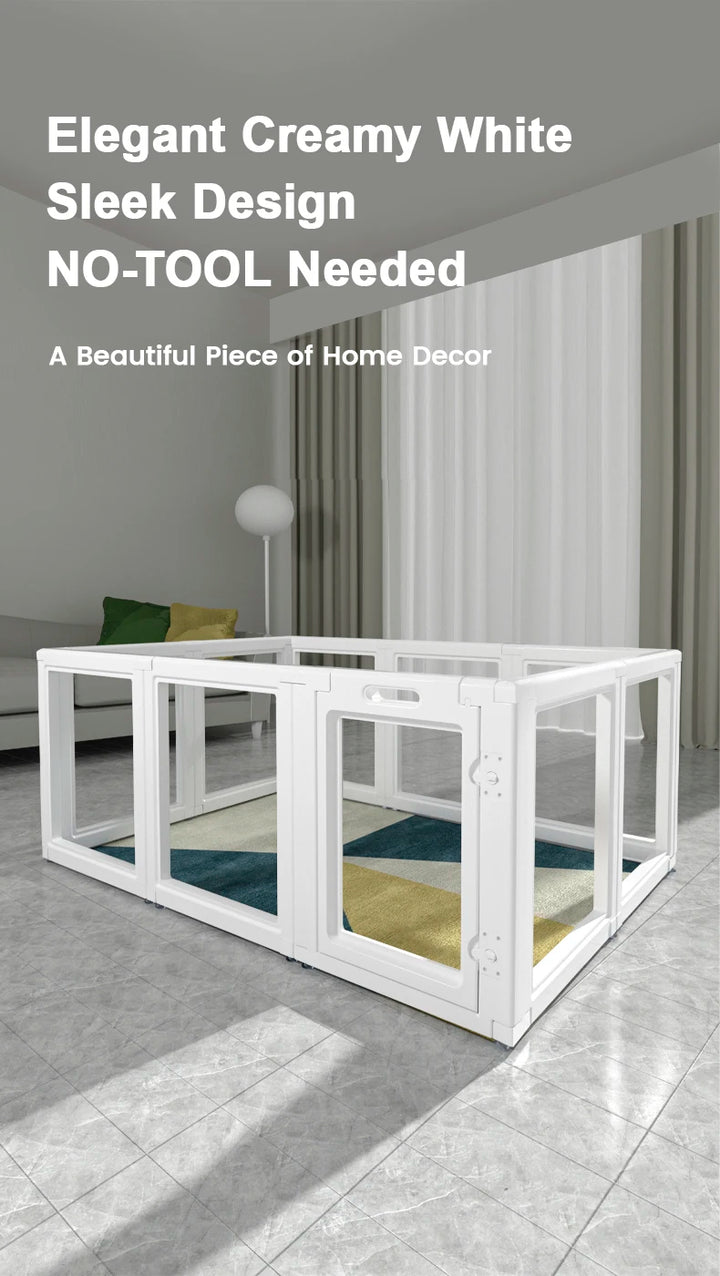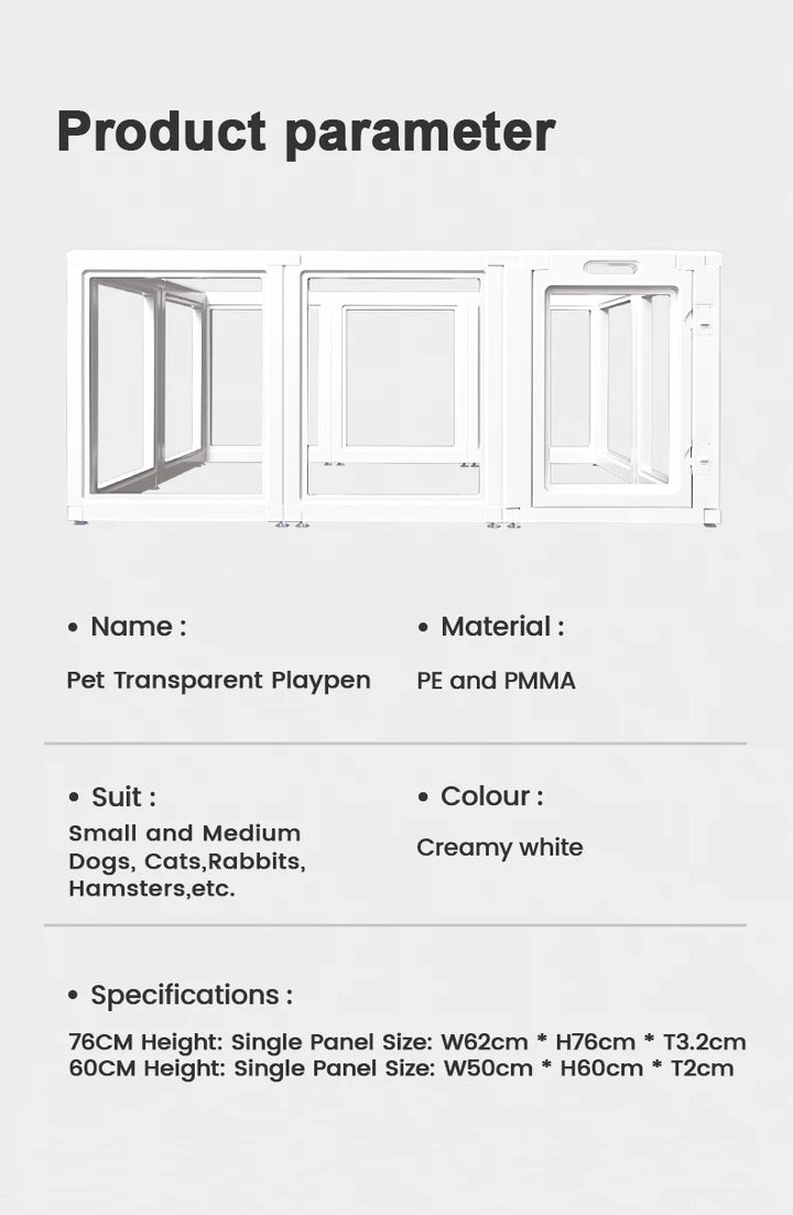 Keep your pets safe and comfortable with this clear dog playpen fence, designed for easy setup and modern style. Made from durable transparent panels, it offers a full view of your pets while blending seamlessly into any home décor. Perfect for both dogs and cats, it provides a secure, open environment for play, rest, and training.