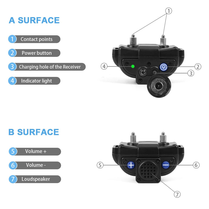 The waterproof receiver allows your dog to swim, play, or walk in the rain without interruption. Both the collar and remote are fully rechargeable, with a dual USB charging port for convenience.