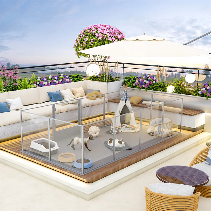 Made with 3.2mm thick high-transparency acrylic panels and a reinforced aluminum frame, this playpen is sturdier and safer than traditional wire or wood pens. Smooth edges protect paws and teeth, while the non-slip base keeps it firmly in place.