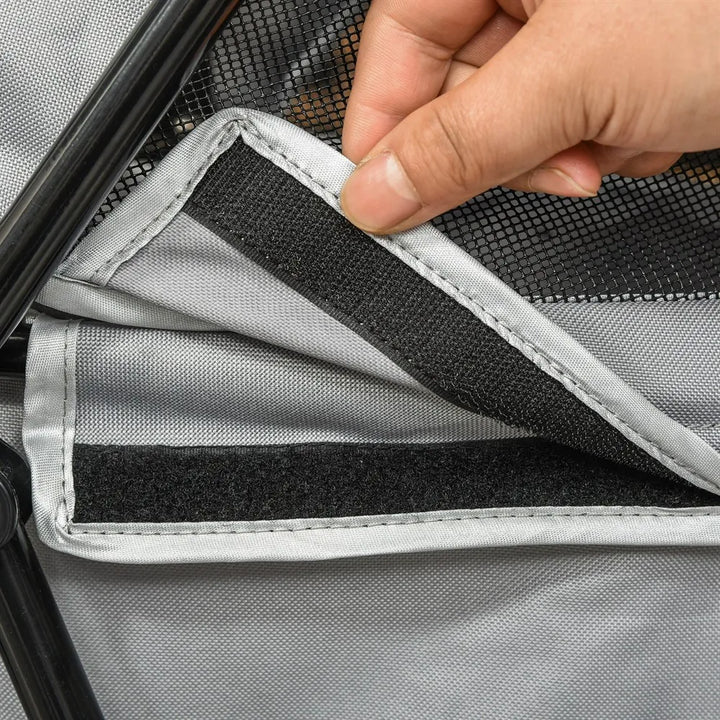 The stroller includes a secure carrycot with safety straps to keep pets safe during motion, while the mesh windows and adjustable canopy provide fresh air and visibility. With front swivel wheels, rear brakes, and a smooth suspension system, this stroller ensures a steady, easy ride on sidewalks or park trails.