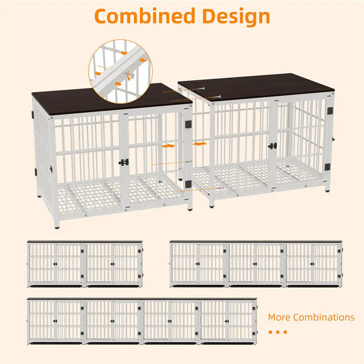 Combine elegance and practicality with this furniture-style dog crate, designed to serve as both a cozy kennel and a beautiful piece of home furniture. Crafted from solid metal and durable wood panels, it offers a secure and stylish resting space for your pet while blending seamlessly into any living room, bedroom, or office.