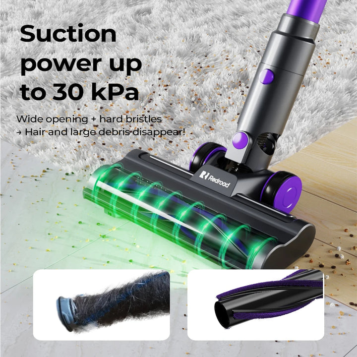 Powerful 30kPa suction removes pet hair, dirt, and debris with ease.