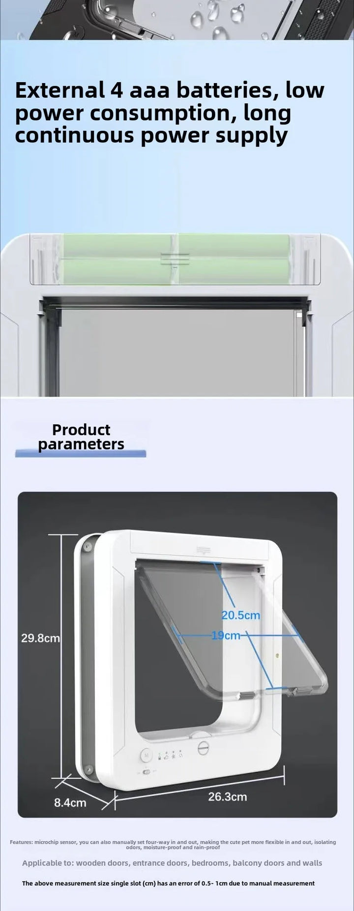 Give your pets freedom while keeping your home secure with this smart electronic pet door. Equipped with a dedicated chip key, it allows only authorized pets to enter or exit — preventing strays or other animals from sneaking in.