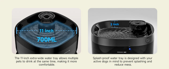 Wide, splash-proof tray: Lets multiple pets drink together without mess.