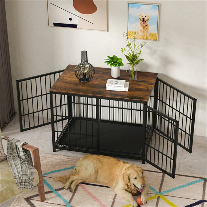 Built from thick metal wire and solid MDF wood, this crate offers a sturdy, bite-resistant structure with a smooth water-based finish that’s easy to wipe clean. The top wood panel doubles as a tabletop—ideal for lamps, décor, or pet accessories—turning your dog’s crate into a tasteful end table that fits any living space.